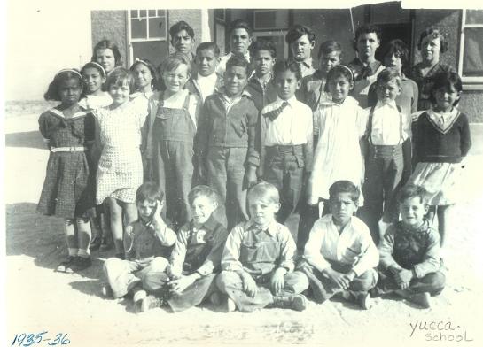 The Yucca Elementary School has been in existence since the early 1900's. It began as a one-room schoolhouse with no electricity. In the winter, some of the older students would come early every morning and light the wood stove before school began. The teacher lived on school grounds in a small building called a "teacherage" which consisted of a living room, kitchen, bedroom and bathroom. The teacher was responsible for teaching all grades, taking care of district budgets and paperwork, as well as janitorial work. As the student population grew, electricity was added, the teacherage became the office, a cafeteria was built, another classroom was added, and the teacher lived in a trailer behind the school building. This is how the school remained until 1995 when the Board purchased the property next to the school and built a new building that housed 2 classrooms and a small office. Today the school has 2 classrooms, an office, a library, a computer lab, a kitchen, and a multi-purpose room which serves as a cafeteria and gymnasium. |